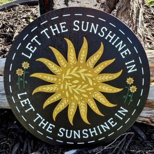 Sonnenblume Let The Sunshine In Türhänger Kranz bemalt Veranda Schild Wandbehang