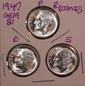 1947 P D S Roosevelt Groschen Juwel Stempelglanz! GLANZ! USA 471182 (3 MÜNZEN)