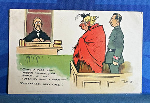 Tom Browne Comic Postkarte 1904 Anwalt Anwalt Richter Gericht Polizei WITWE FRAU