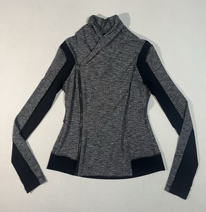 Lululemon Bhakti Yoga Jacke asymmetrisch Reißverschluss Damen 10 Wickel Stretch grau