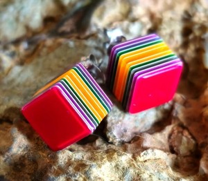 Vintage Lea Stein Würfel Ohrstecker 1/4" mehrfarbig geschichtet Plexiglas Pop Art Stil