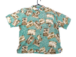 Bermuda Bay Herren XL Hemd Knopfleiste Kurzarm 100% Seide Tropisches Muster