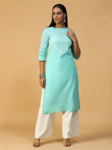 Handbestickte weiche mint Lucknowi Chikankari Baumwolle gerade Kurta Damen
