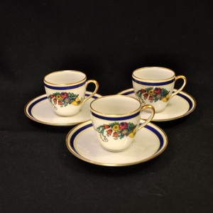 George Jones 4 Auflaufförmchen 3 Untertassen Blumensprays mit blauen Bändern mit Gold 1921-1929 CHF 103,80