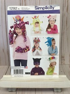 Simplicity 1292 Childrens Animal Hats Mittens for Fleece Sewing Pattern S-L NEW