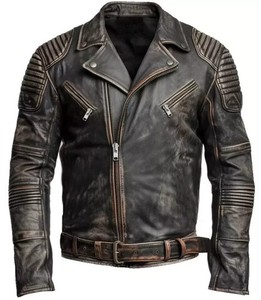 Herren Vintage Biker schwarze Lederjacke, Distressed schwarze Motorradjacke