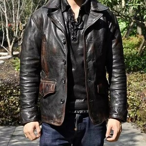 Herren Vintage Lederjacke in verwaschenem Braun, neu Trucker Style