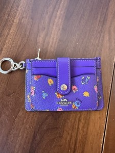 Coach Karte Ausweis kleine violette Blumen Geldbörse mit Schlüsselring und Kleingeld Geldbörse EUC CHF 27,97
