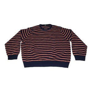 J. Crew Herren Gr. XL 100% Lammwolle gestreift Rundhals Pullover Vintage Navy