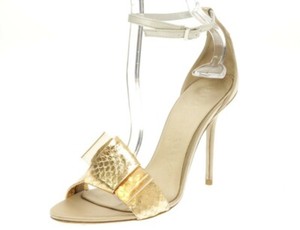 Stuart Weitzman schicke Damen-Sandalen champagnerfarben Seide Fersenriemen Schleife Größe 11 M CHF 168,76UVP CHF 302,36