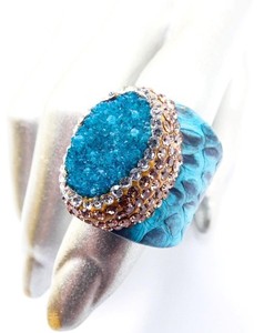 GLITZERNDER klobiger Blautopas Druzy Stein rauchbraune Kristalle oval Cocktail S8 Ring