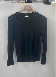 Chanel Damen Schwarz Langarm Rundhals Klassisch Pullover Bluse Oberteil Größe 38