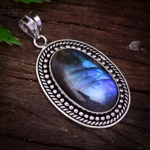 Unique Labradorite Gemstone 925 Sterling Silver Handmade Pendant AB-109