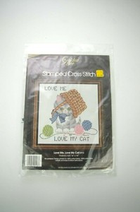 Golden Bee Stamped Cross Stitch Kit Love Me Love My Cat 14"x14" #20116