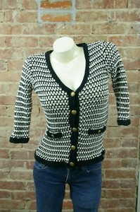 CAbi Womens Cardigan Sz S Black White 3/4 Sleeve Style 868 Textured