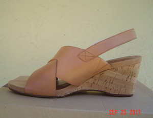 NEU EASY SPIRIT BRAUNE BEQUEME LEDER-KEILABSATZ-SANDALEN GRÖSSE 8,5 W WEITE