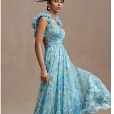 LoveShack ausgefallenes Damen weiß blau Blumen Garnita Blumen Stufen Maxikleid Größe 0