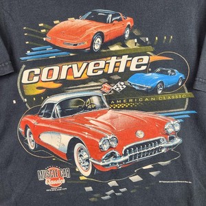 Vintage Corvette Hemd Herren Medium Schwarz Grafik Chevrolet Muscle Car 90s Y2K