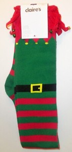 Claires rot & grün ELF Weihnachten Overknee Socken mit Glocken Damen NEU