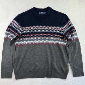 Vineyard Vines Fair Isle Herrenpullover Large marineblau grau Merinowolle Alpaka Mischung