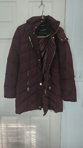 Neu Cole Haan langer gefütterter Daunenmantel mit Kapuze Jacke XS merlot pflaume neu ohne Etikett CHF 64,66