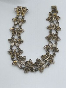 Antikes Paar Handfesseln gewebt Perlen Blumen Seide hinten Messing Knopfverschluss 8 Zoll L CHF 259,87