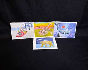 Set of 4 Watercolor Print Animal Themed Blank Greeting Cards W Envelopes