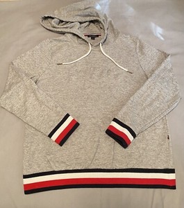Tommy Hilfiger Hoodie Women Med Gray Classic Pouch Sweatshirt Embossed Logo