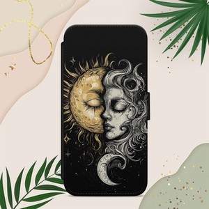 Sun Moon Mystic Flip Wallet Handyhülle für iPhone Samsung Google Pixel