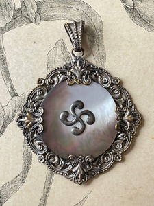 Joli Pendentif Souvenir du pays Basque - Croix & Nacre - Métal argenté