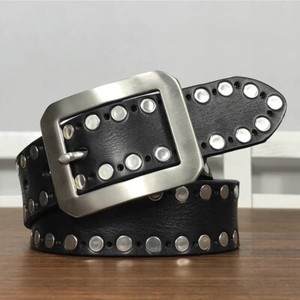 Echt Leder Gürtel Mode Massiv Messing Nieten Nieten Unisex Punk Gürtel Handarbeit