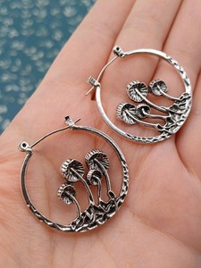 Neue atemberaubende moderne silberfarbene Creolen mit Pilzdetails