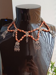 Antike jemenitische Halskette Sterlingsilber & Koralle Perlen