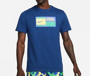 Nike '22 World Cup Brazil Voice Herren Fußball Oberteil blau T-Shirt Größe Small NEU