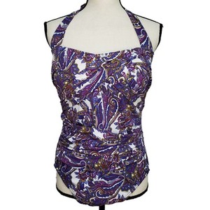Lands End Badeanzug Größe 14 Einteiler Neckholder lila Paisley Twist Brust Regal BH CHF 10,41Bisher: CHF 20,82