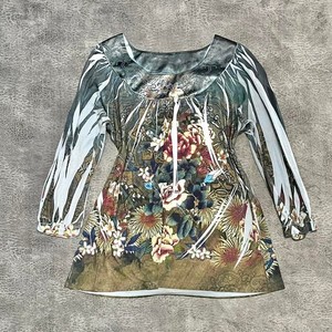 Jane Ashley verzierte Bluse mit Schmetterling und Knopfleiste