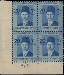 ÄGYPTEN - 1939-46 Farouk & Pyramiden - 30 Millime grauer 4er Block - Scott #234 - postfrisch CHF 20,11