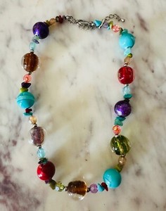 Edelstein große bunte Perlenkette Faux Türkis Amethyst rot Bambus Koralle