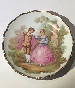 Vintage Limoges La Reine France Fragonard Signed Courting Couple Pin Dish 9cm D