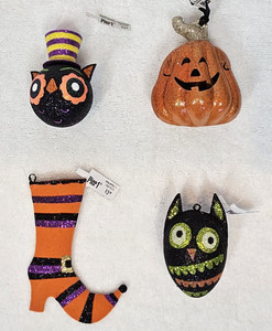 Set 4 Vintage Pier 1 Halloween Ornamente schwarz orange Eulen Kürbis Stiefel gruselig CHF 44,70Bisher: CHF 63,86