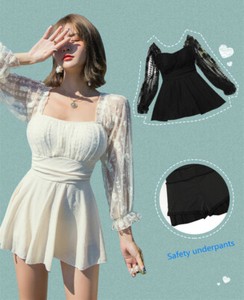 Koreanisches Damen Spitzenkragen schönes plissiertes elastisches Badekleid schmale Bademode CHF 12,12