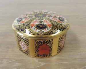 Crown Derby 1128 Old Imari 3" runder Schmucktopf mit Deckel massives Goldband
