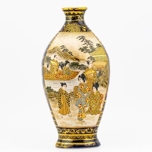 Antike japanische Porzellan Satsuma Miniatur Vase Kobalt vergoldet Meiji 19. Jh.