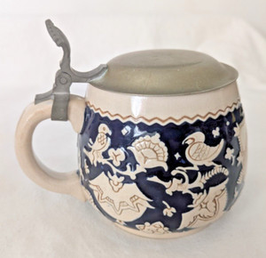 Vintage Kobaltblau & Grau Steinzeug Deutscher Bierstein Zinn Deckel