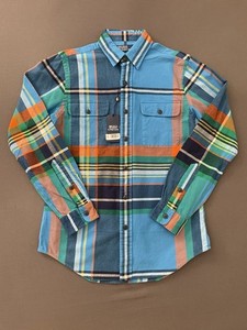 Neu mit Etikett Polo Ralph Lauren klassische Passform blau kariert Flanellhemd LS 710881860001 Herren S