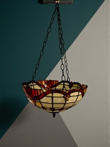 Tiffany Stil Hänge Hängelampe Deckenschirm Deckenfluter Art Deco Glas 42 cm