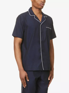 Orlebar braun Marne Baumwoll-Popeline Hemd Herren Größe Large marineblau Lounge Knopfleiste