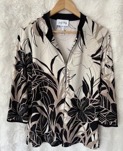 JOSEPH RIBKOFF Printed 1/4 Zip Front Stretch Top Blouse Size 10 12
