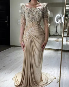 Elegantes Perlen Abendkleid Langarm 3D Blumen Applikationen Rüschen Champagner CHF 116,05Bisher: CHF 124,05