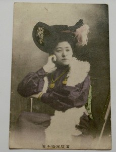 Japan schöne Frau aufwendiger Hut Western Kleidung antike Postkarte